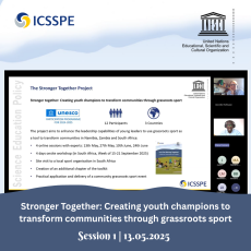 ICSSPE successfully held the first expert session for the “Stronger Together: Creating youth champions to transform communities through grassroots sport” project, co-funded by the UNESCO Participation Programme, on 13 May 2025. The virtual gathering brought together 12 young leaders from Namibia, Zambia, and South Africa, united by their passion for using sport as a tool for inclusion, empowerment, and social transformation.